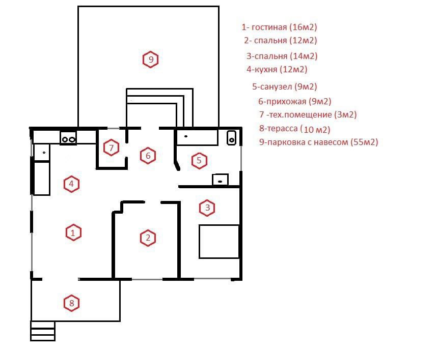 - Санузлов: 3