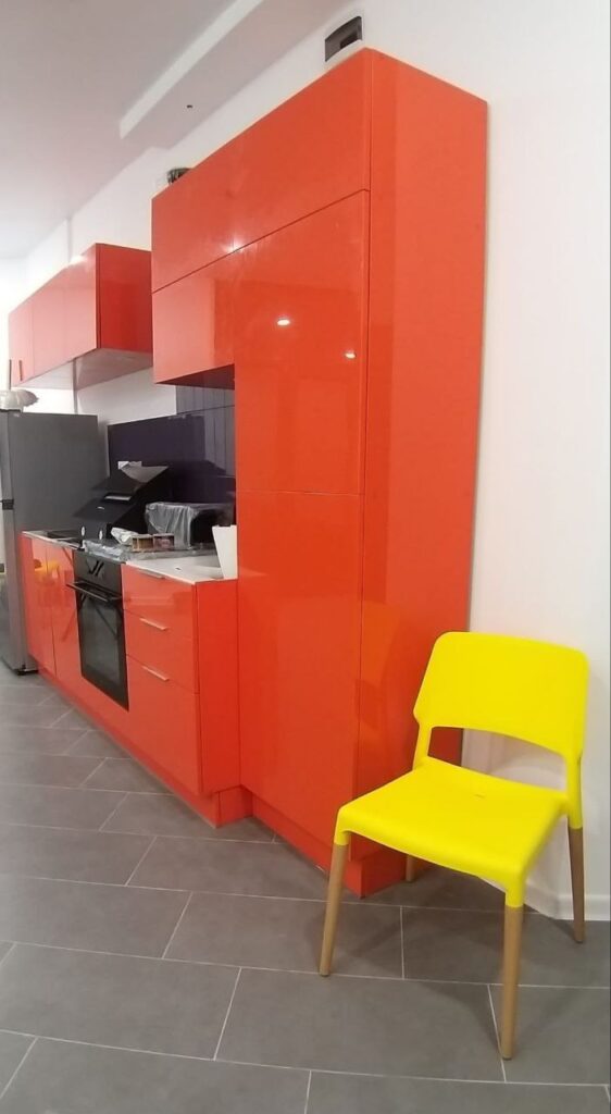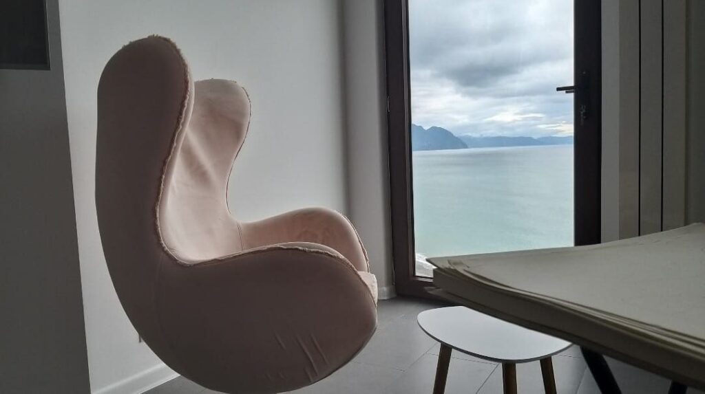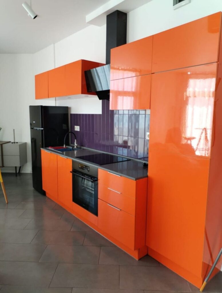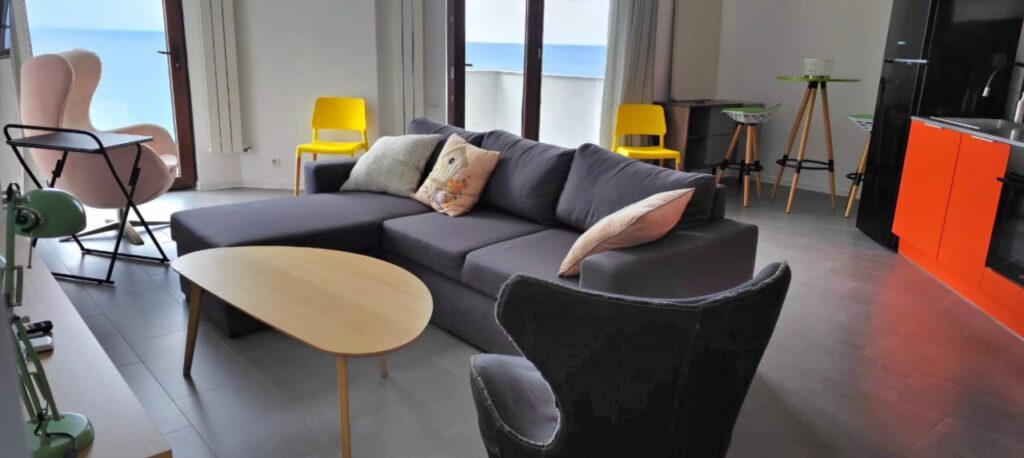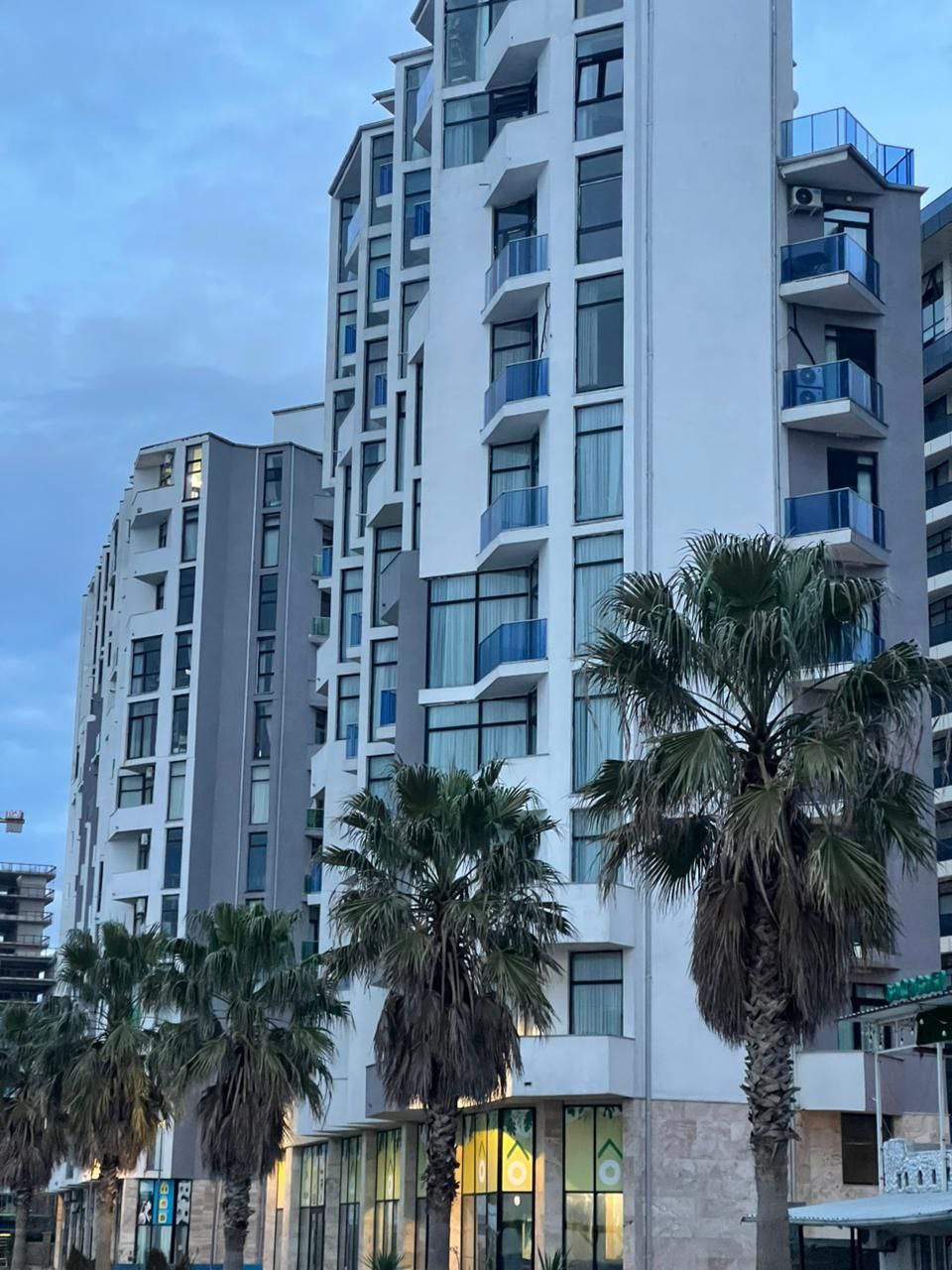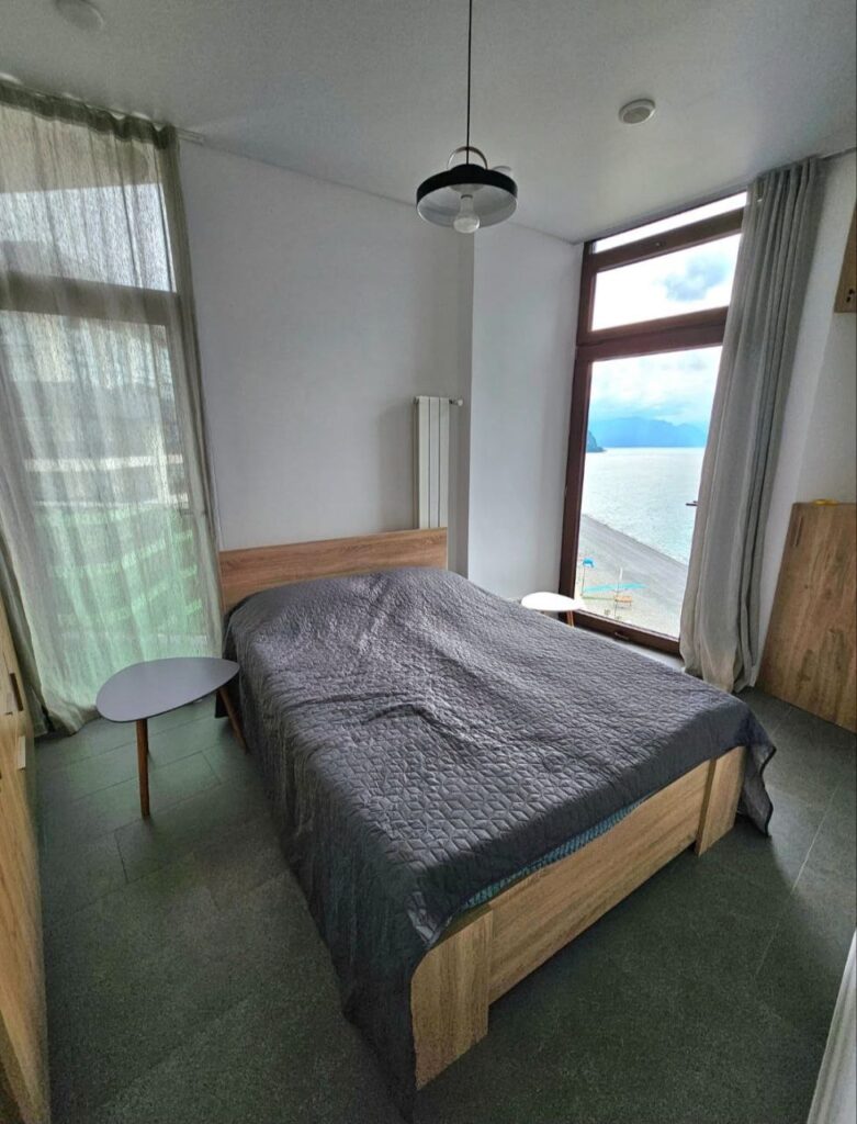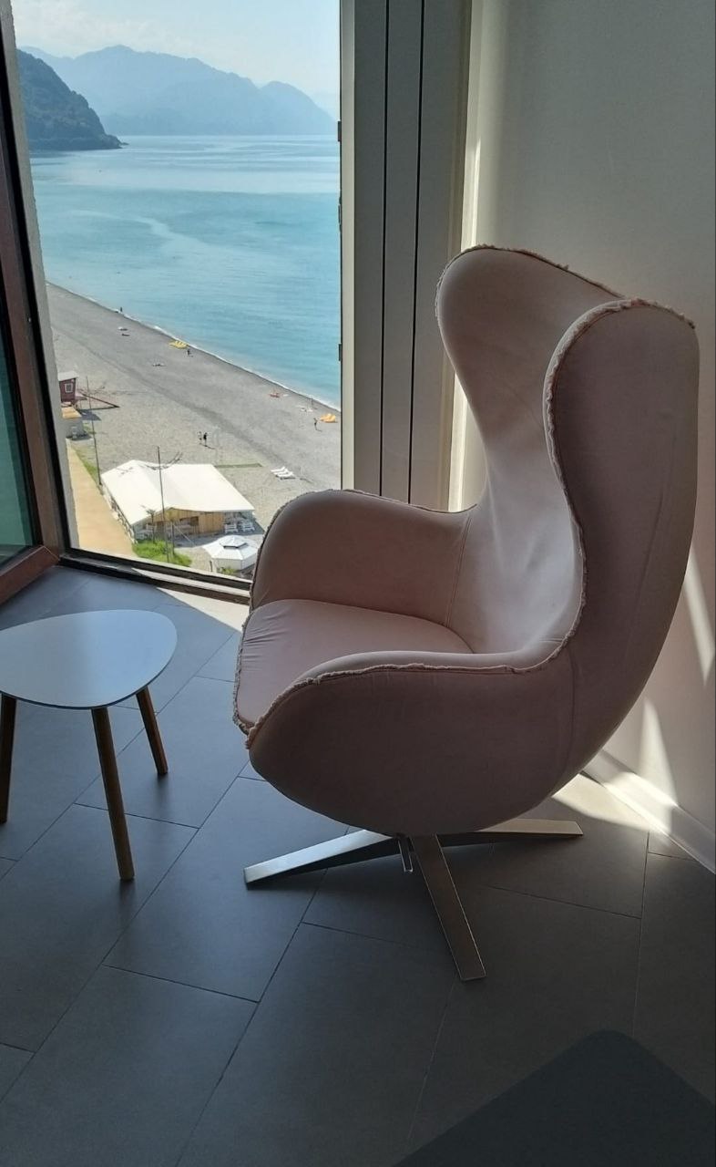 Квартира выполнена в современном стиле, полностью укомплектована мебелью и бытовой техникой. Комплекс расположен на первой линии — фактически у самого пляжа — в курортном районе Гонио, который активно развивается благодаря открытию пятизвёздочных отелей Radisson, Hilton и Wyndham.