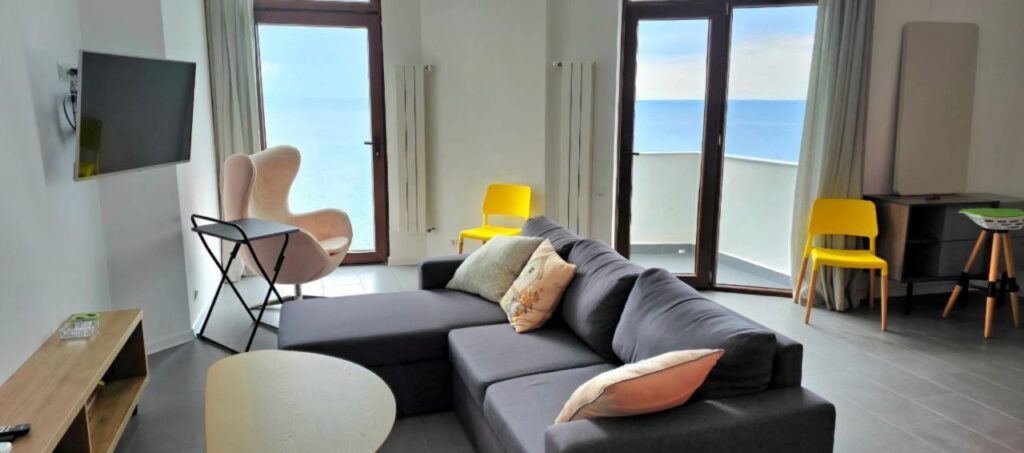 Продаётся просторная и очень светлая двухкомнатная квартира в жилом газифицированном комплексе Gonio Residence с прямым видом на море и потрясающие закаты.