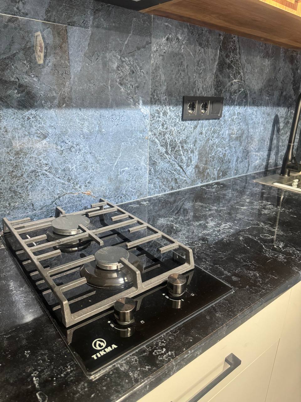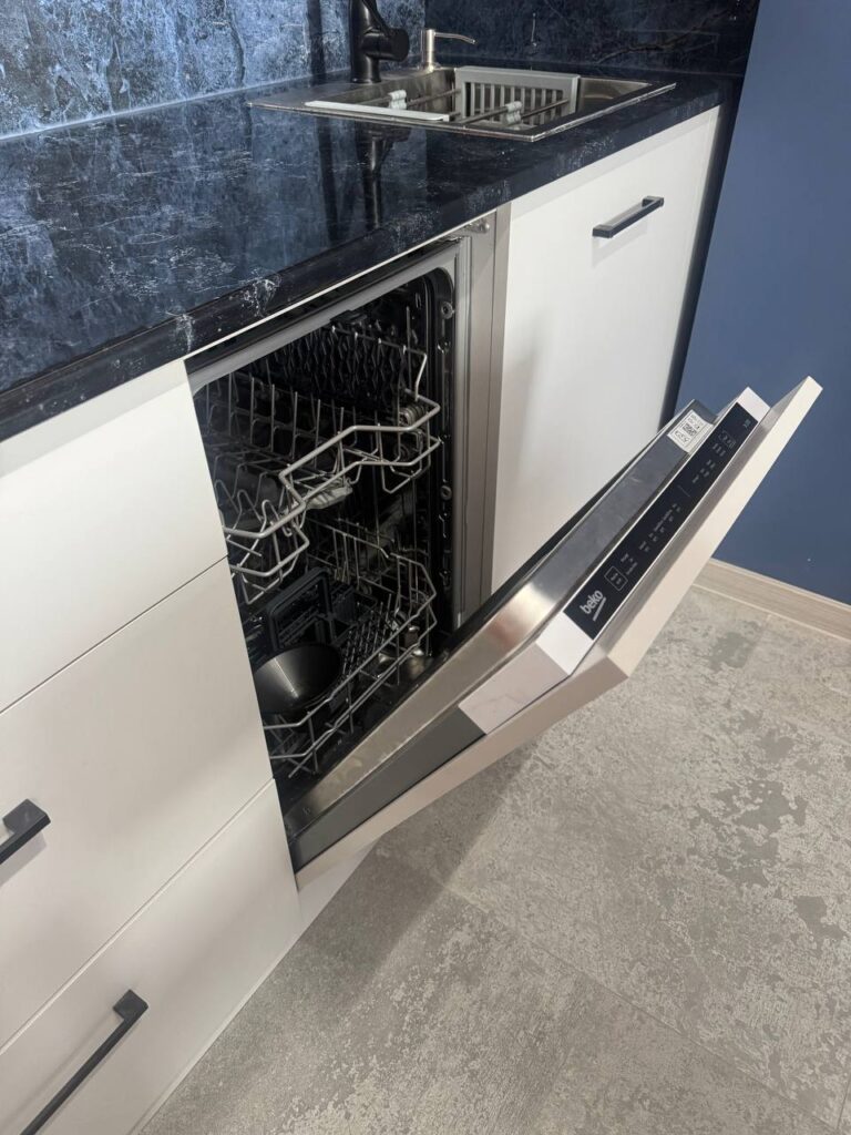 Полностью укомплектована мебелью и техникой, включая посудомоечную машину и полноценный холодильник.