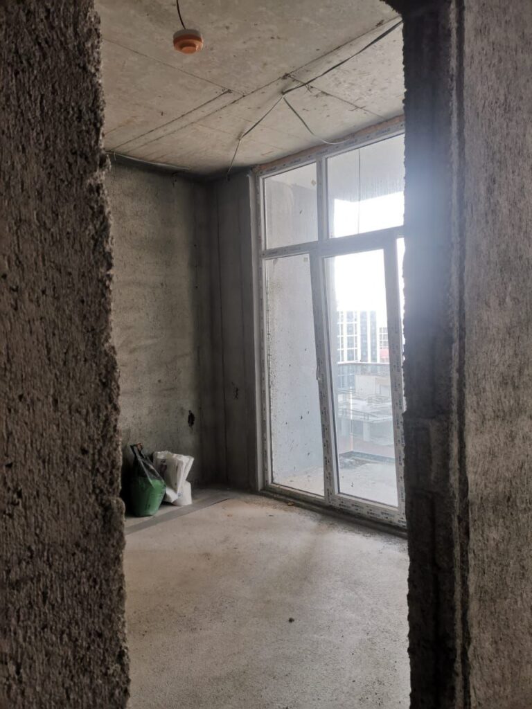 Продаётся просторная квартира в Гонио в состоянии белого каркаса с видом на море и горы. В квартире подключён газ.