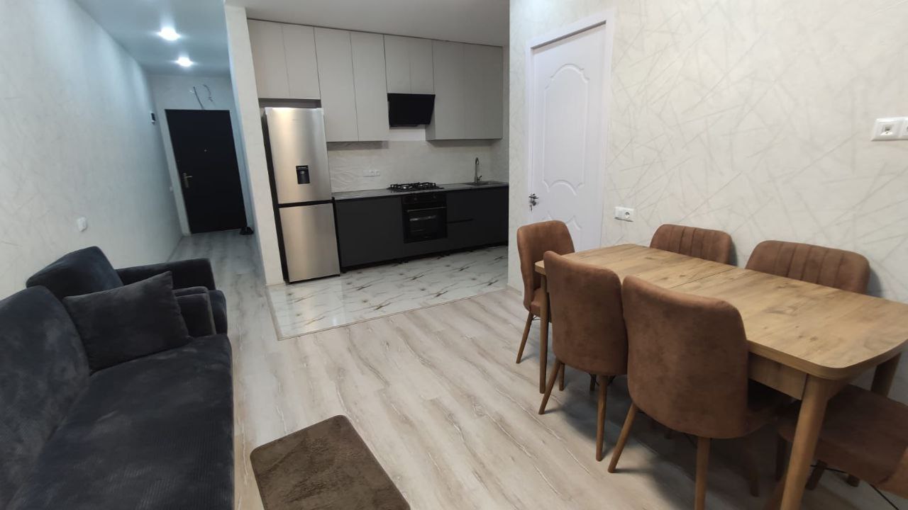 Квартира оборудована всей необходимой бытовой техникой, мебелью, системой охлаждения, электрическим водонагревателем.