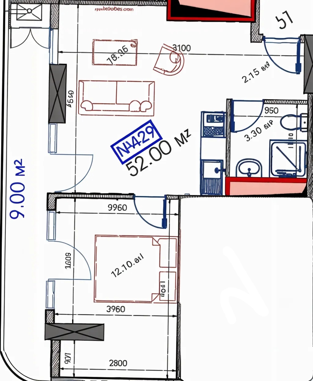 - Площадь объекта: 52 m²