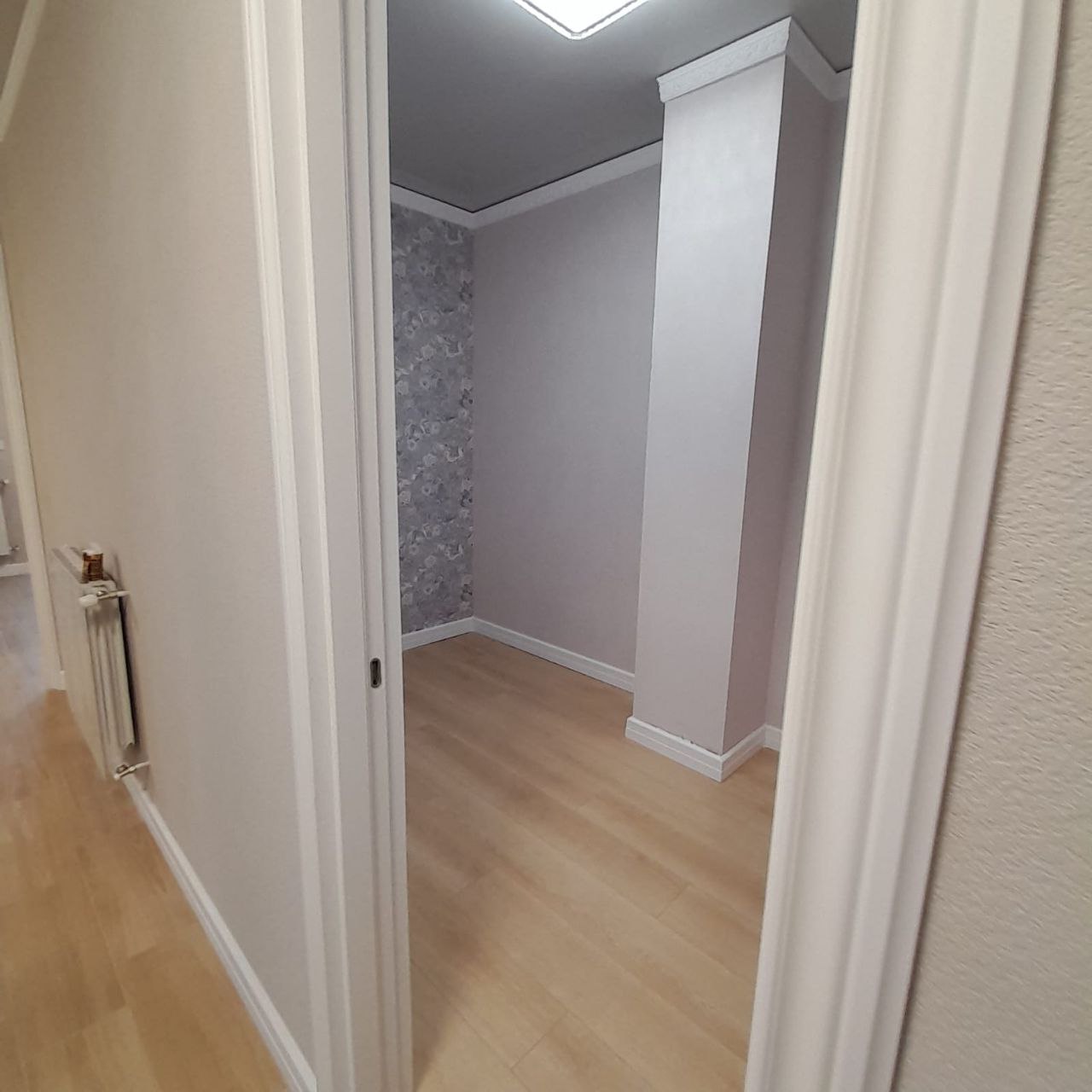 Продаётся трёхкомнатная квартира с одной светлой спальней и дополнительной комнатой площадью 8 м² без окна, которую можно использовать как детскую игровую, гардеробную или кабинет.