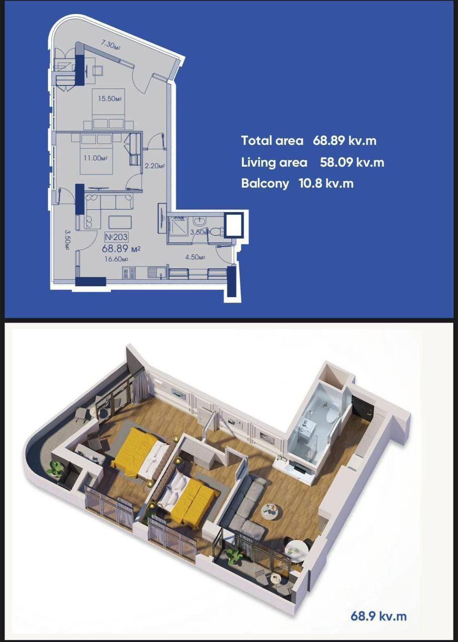 - Площадь объекта: 69 m²