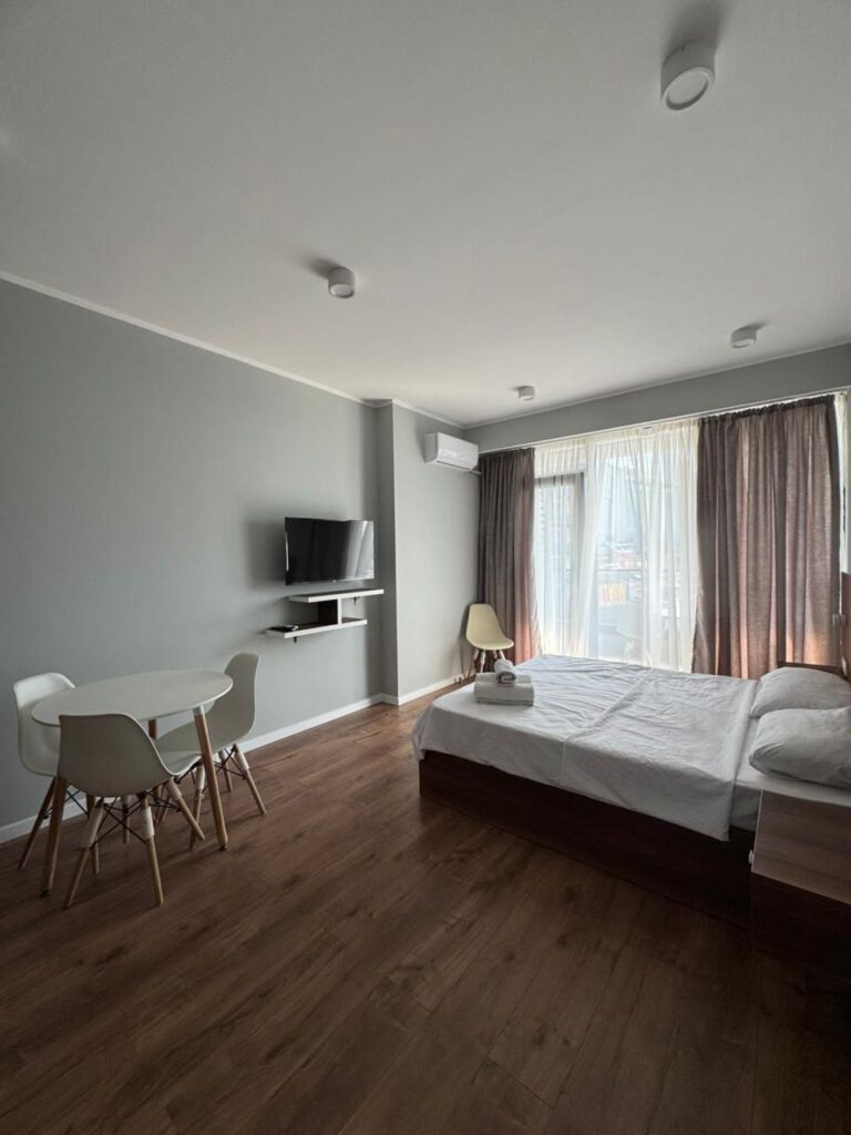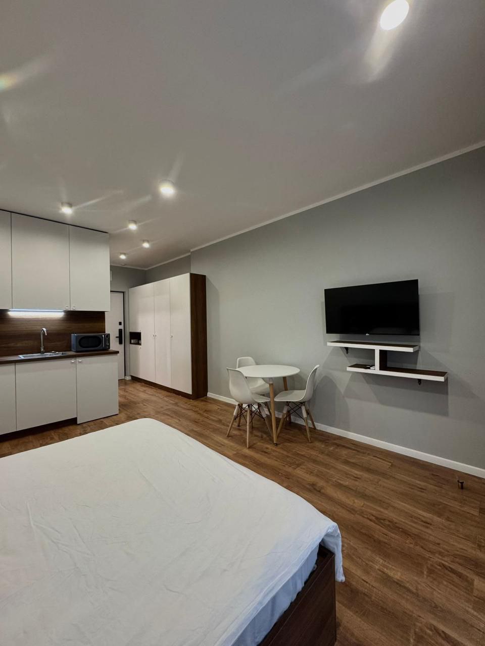 Студия оборудована современной мебелью и техникой, готова к проживанию или сдаче в аренду.