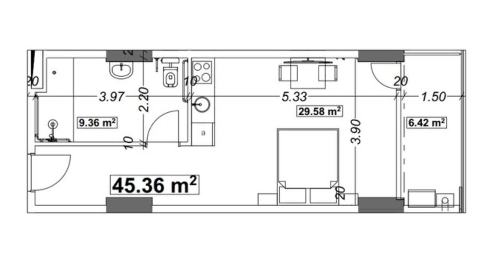 Продаётся студия по переуступке в чёрном каркасе.