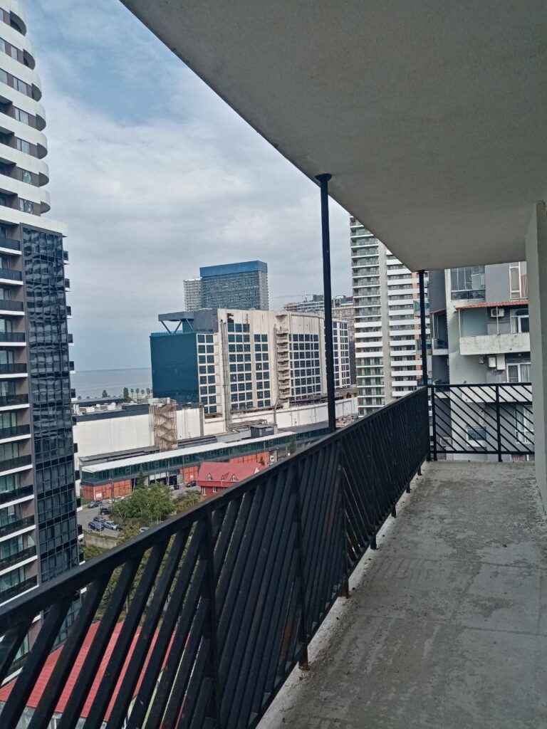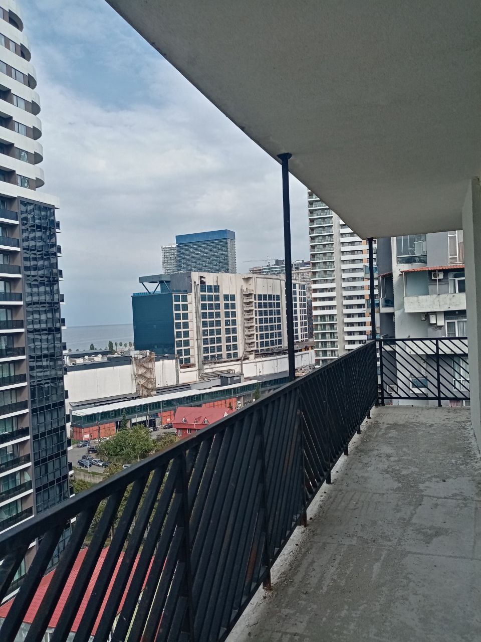 Просторный угловой балкон с видом на море.