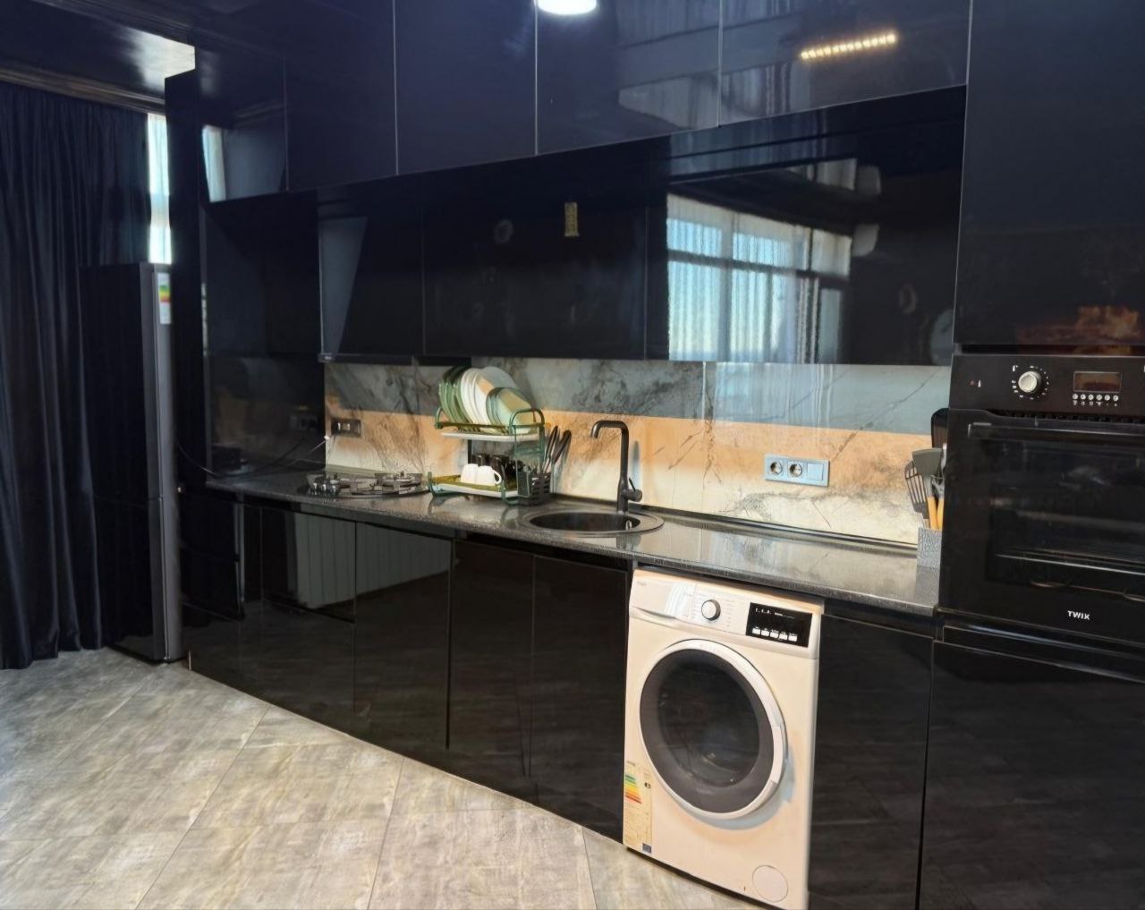 Двухкомнатная квартира расположена на 17-м этаже, общей площадью 175 м², с дизайнерским ремонтом, мебелью и бытовой техникой.