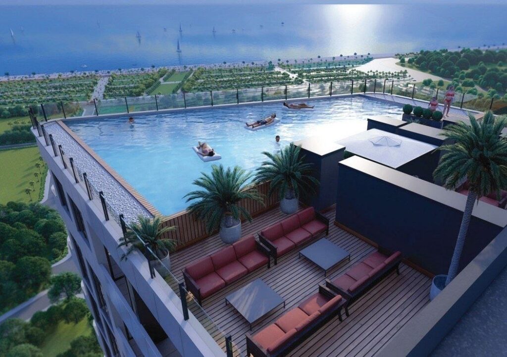 В комплексе развитая инфраструктура: бассейн и ресторан на крыше, SPA, тренажёрный зал.