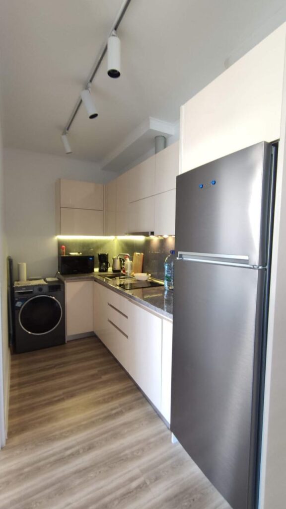 Квартира расположена на первой линии в 50 метрах от моря, в районе с развитой инфраструктурой. Рядом магазины, рестораны, торговый центр Metro City. Хорошая инвестиция как для жизни, так и для сдачи в аренду.