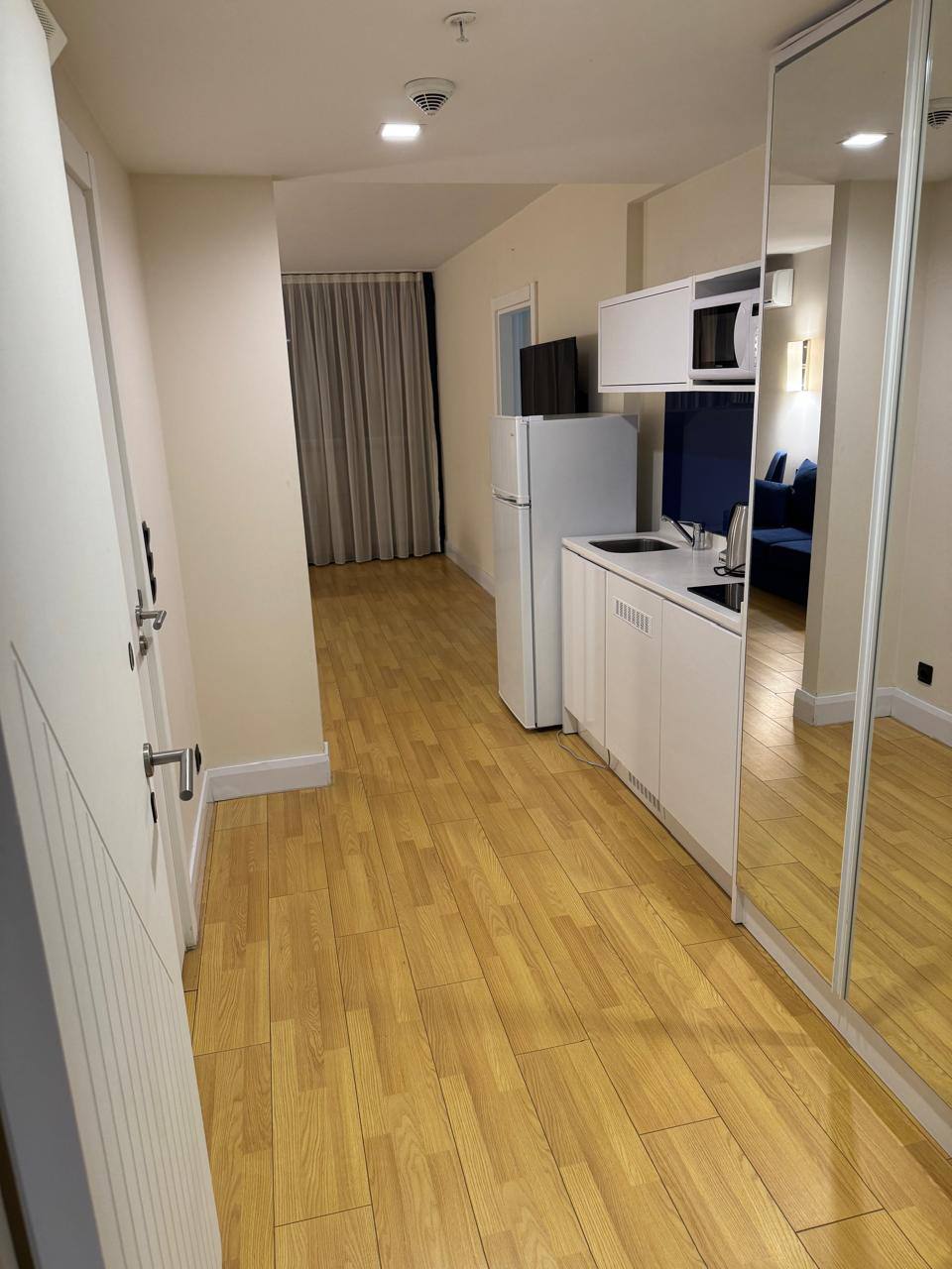 В квартире выполнен современный ремонт, установлена мебель и вся необходимая бытовая техника — можно сразу заезжать или сдавать в аренду.