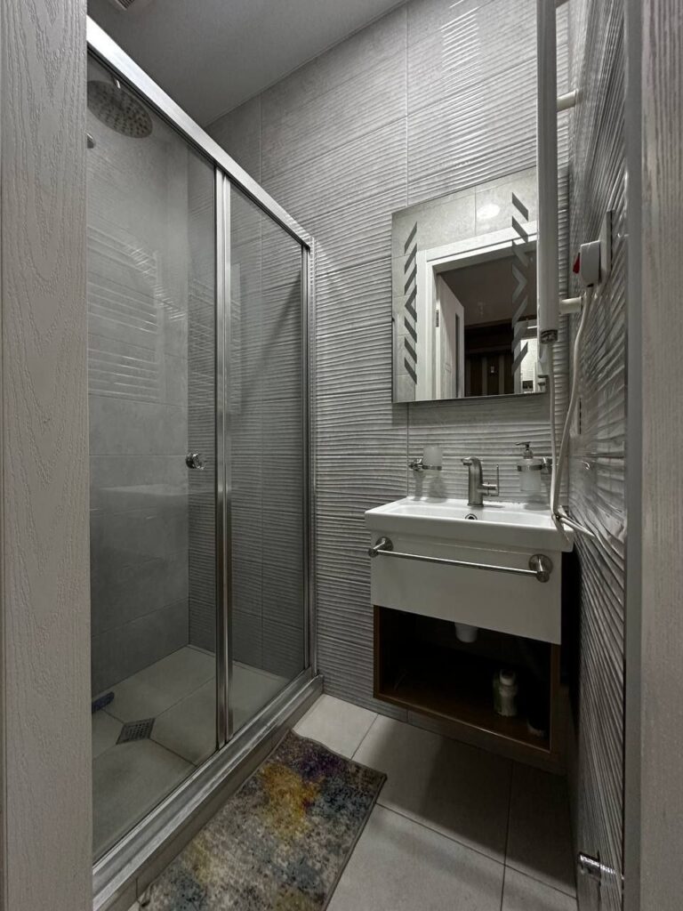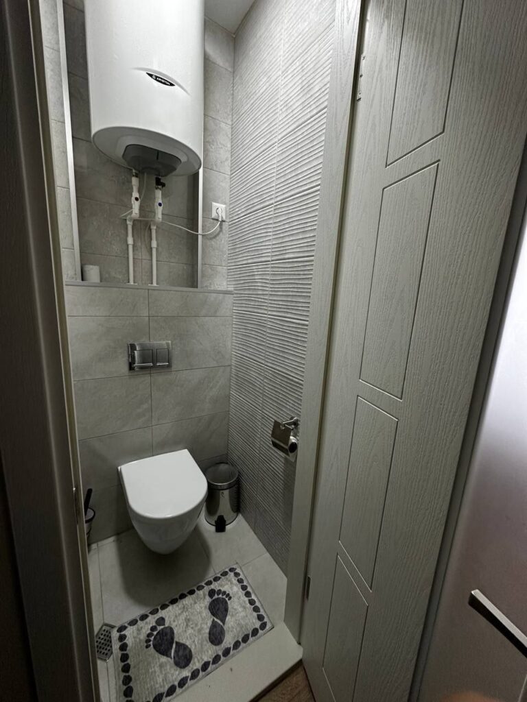 Раздельный санузел: отдельно душ и отдельно туалет — редкое и удобное решение для студии. Квартира полностью укомплектована «под ключ», есть рабочий стол.