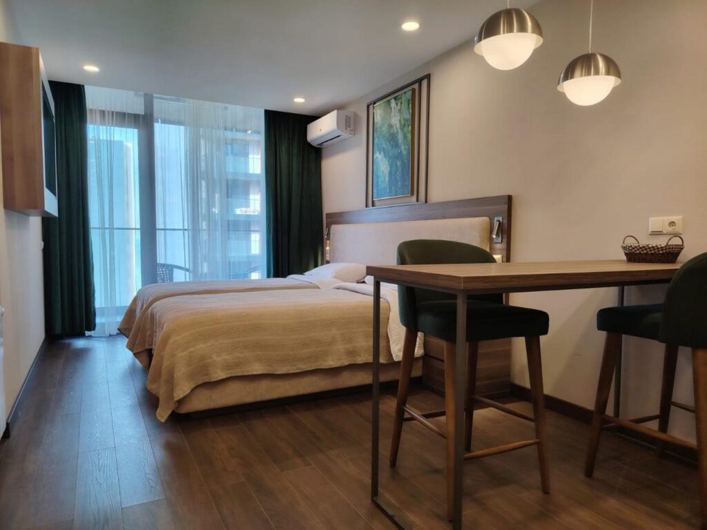 Сдается помесячно (до лета) или посуточно студия в комплексе Rainbow. Укомплектована всем необходимым для долгосрочного проживания. Море и набережная в шаговой доступности. Рядом парк Качиньских, новый скейт-парк, ТРЦ Metro City. Поблизости находятся несколько супермаркетов, кафе, столовая, кофейни, кулинария и аптеки, салоны красоты. В комплексе есть, фитнес-зал с сауной и бассейном.