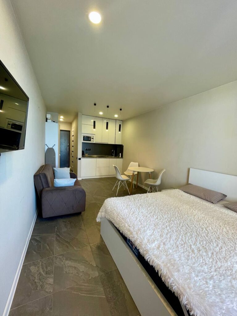 Сдаётся комфортная и уютная студия с шикарным видом. Квартира полностью оборудована всей необходимой мебелью и бытовой техникой для комфортного проживания.