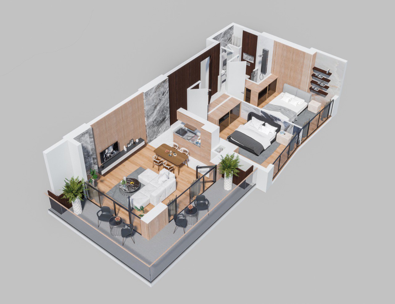 Архитектура Real Palace Blue сочетает современные решения и классические формы, вдохновлённые природной красотой морского побережья и горных ландшафтов.
